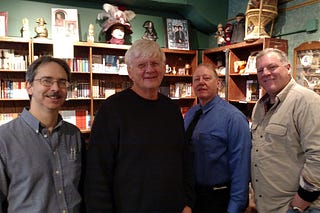 A 2015 photo featuring crime writers Jack Fredrickson, Mike Black, Dave Case, and J. Michael Major — a snapshot of the community behind the genre.