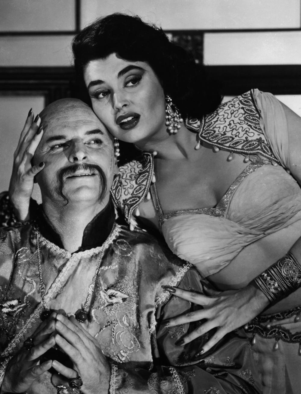 Fu Manchu’s other minion—or should I say concubine—is the gorgeous Karamaneh, played by Hawaiian beauty Laurette Luez. Luez’s alleged claim to fame is that she gave Norma Jean Baker her stage-acting name, which was Marilyn Monroe.