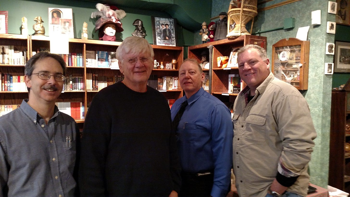 Pictured here: Jack Fredrickson, Mike Black, Dave Case, and J. Michael Major — four voices in the crime and mystery world whose paths have crossed over the years.
