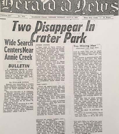 The events of Saturday and Sunday did not become public until Monday when the Klamath Falls Herald and News printed the first story about it. It was written by Wallace Myers who stayed with the story thereafter. His account related the confusion and wonder, particularly in a quote from Chief Ranger Lou Hallock.