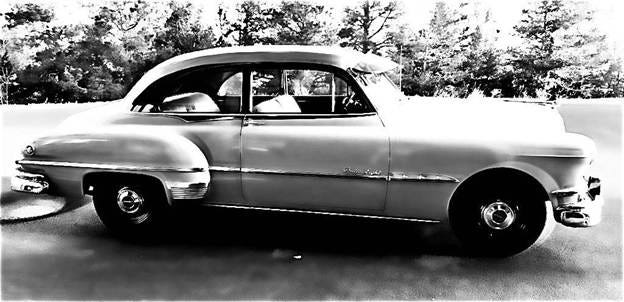 The big Pontiac roared down the road. Inside it, they rested on a commodious bench seat with heavy springs and deep padding, but no seat belts—not in 1952. The polished enamel dashboard was inset with an ashtray and cigarette lighter. Radio sounds emitted from a round speaker with a clock inset. An almost empty carton of Parliaments lay on the seat between them, in case either man needed a fresh pack.