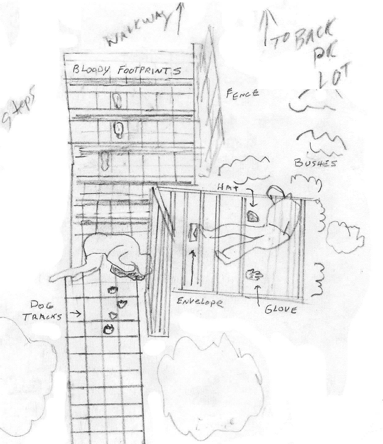 It is a cool June evening, and you and Roger greet the officer, skinny and seemingly too young to wear a uniform, and get a quick briefing. The pasty-faced officer tells you that they saw a lot of blood on the walkway, and upon opening the gate, saw two bodies, one female and one male, obviously deceased. He says, “So we backed out and secured the crime scene.” You ask if they have ID’d the victims yet. The officer had checked, and this was the residence of the ex-wife of a Hollywood actor, but didn’t know who the male victim was yet. You ask, “Has Crime Scene and the coroner been called?” The officer responds in the affirmative. You thank the officer, go under the tape, and, standing on the sidewalk viewing the scene, try to decide the best way to approach without disturbing the scene, which may be difficult considering all the blood.